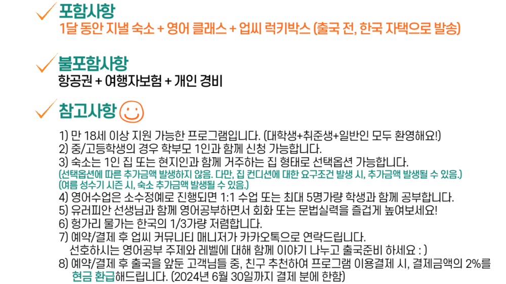 ※ 비행기표 취소 또는 변경에 따른 환불 불가하며 영어수업 시작 일정도 변경 어렵습니다.