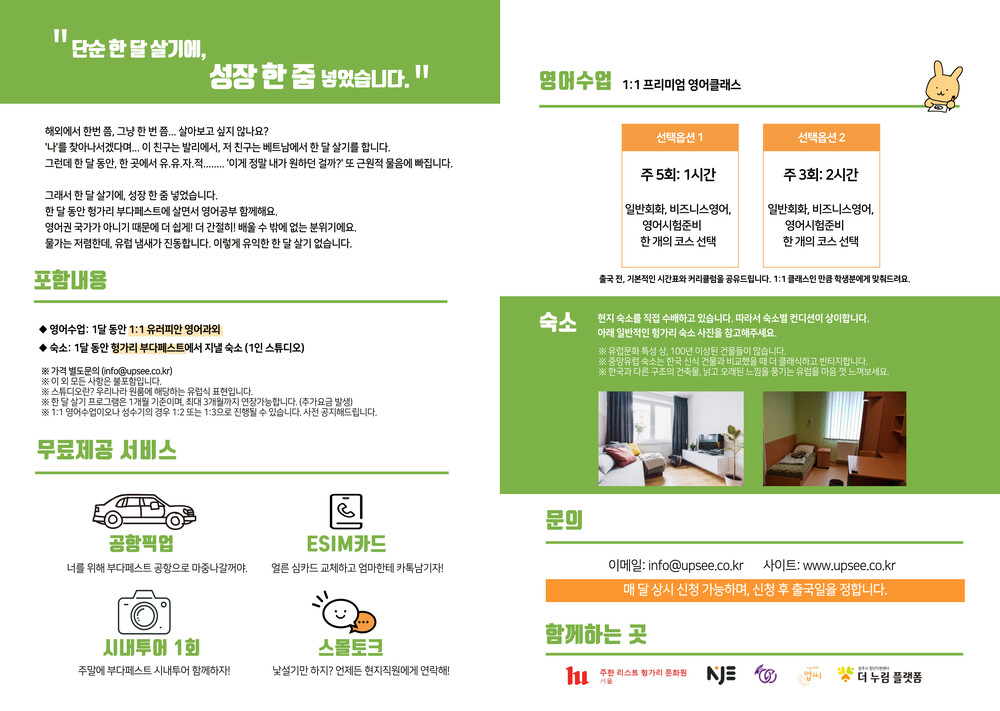 - 출국 전, 업씨가 준비한 소정의 선물을 택배로 보내드립니다. 부다페스트에서 직접 수령하실 수도 있습니다.