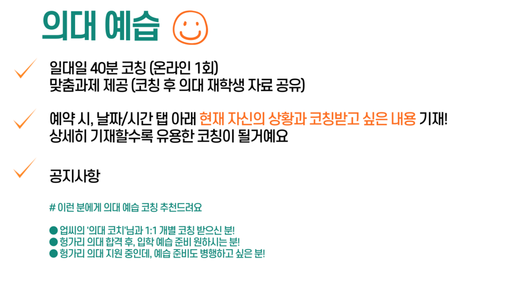 ※ 1:1 예약제 코칭 상품으로 코치 사정에 의해 일정이 변경될 수 있습니다.