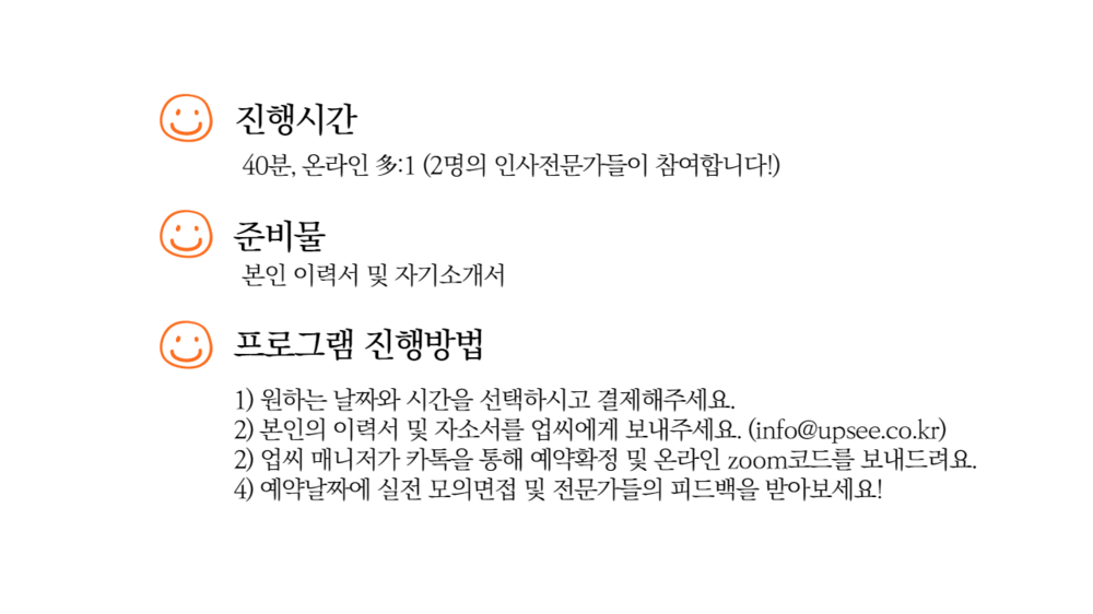 1. 인사면접관多:1 예약제이므로 환불 불가 상품이나